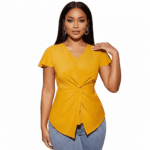 Illuminez vos journées avec la blouse Solaire, une pièce au design architectural qui redéfinit l’élégance moderne. Sa teinte jaune moutarde vibrante et sa coupe ingénieuse en font le choix idéal pour celles qui recherchent un vêtement à la fois structuré et d’une grande douceur visuelle.