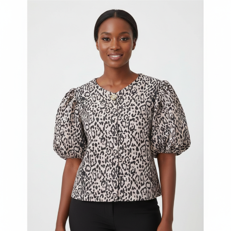 Ajoutez une touche de caractère et de modernité à votre garde-robe avec cette blouse courte à l’allure sophistiquée. Alliant l’audace de l’imprimé animalier à une coupe structurée, cette pièce est le parfait équilibre entre féminité audacieuse et chic contemporain.