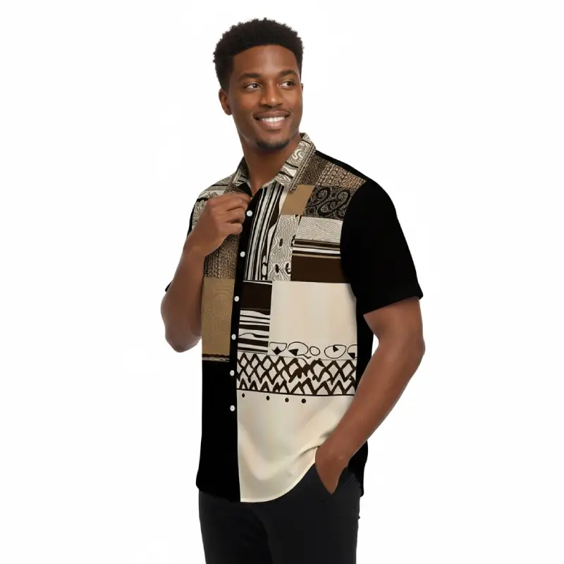 votre personnalité avec une pièce unique qui fusionne tradition et tendance contemporaine. La chemise Satin manche courtes pour Hommes n’est pas qu’un simple vêtement, c’est une déclaration de style. Son design audacieux, composé de motifs graphiques d’inspiration africaine et de textures visuelles riches, en fait l’atout maître de votre garde-robe estivale ou décontractée.