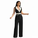 Affirmez votre style avec cette combinaison pantalon bicolore, l’équilibre parfait entre le vestiaire professionnel et l’élégance de soirée. Sa coupe structurée et ses contrastes audacieux en font une pièce maîtresse pour toutes celles qui souhaitent marquer les esprits avec distinction.