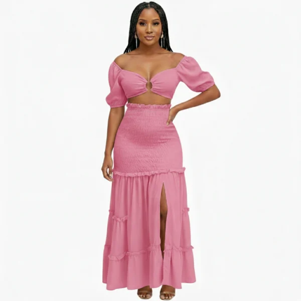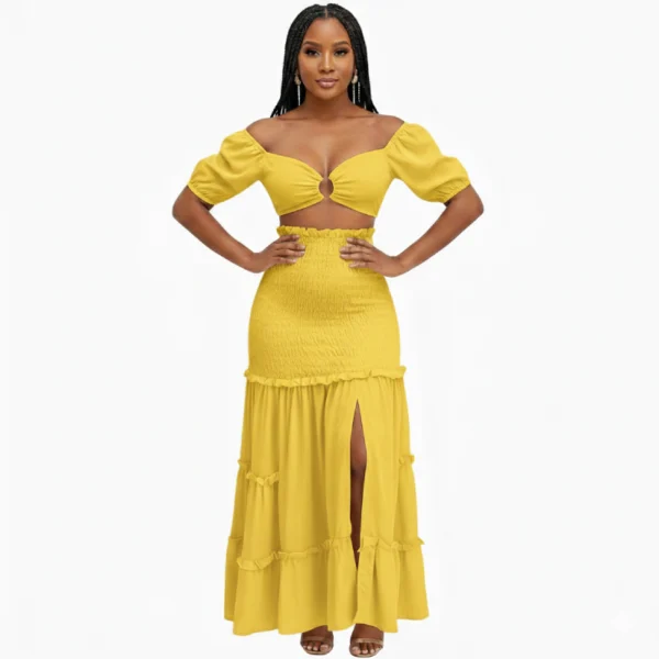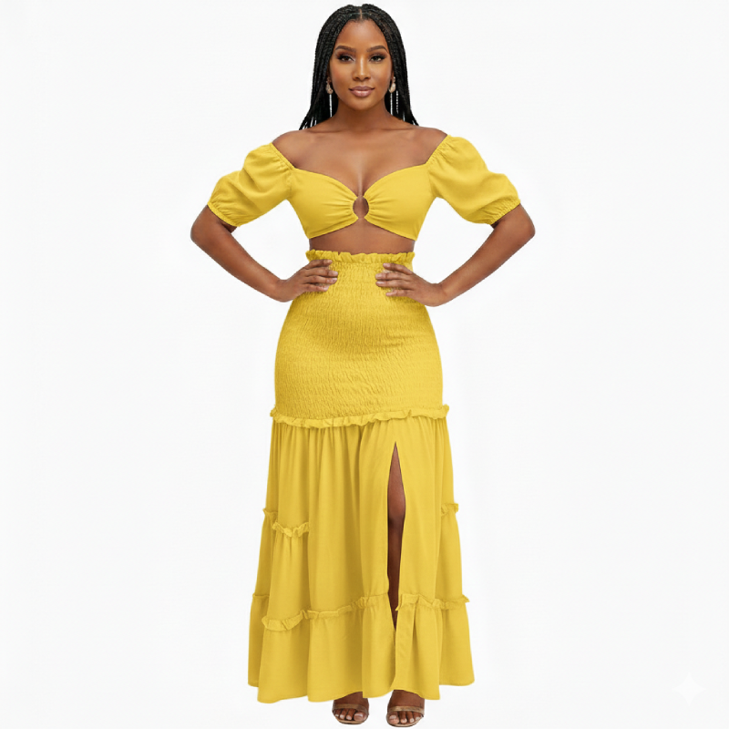 Laissez-vous séduire par cet ensemble irrésistible qui marie parfaitement audace et sophistication. Conçu pour sublimer toutes les silhouettes, ce duo est la pièce maîtresse qu’il manque à votre garde-robe pour vos sorties ensoleillées ou vos événements chics.