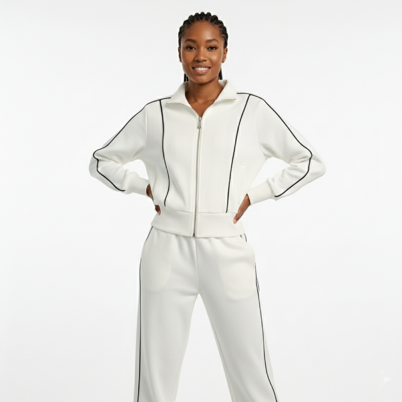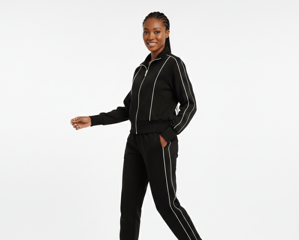 Redéfinissez le confort avec notre ensemble, une pièce maîtresse qui concilie l’aisance du sportswear et le raffinement du design contemporain. Conçu pour la femme moderne qui exige une allure impeccable, même dans ses moments de détente ou ses déplacements.
