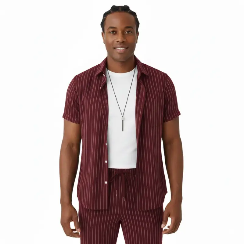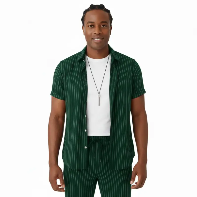 Redéfinissez votre style quotidien avec cet ensemble deux pièces alliant confort moderne et sophistication intemporelle. Conçu pour l’homme qui soigne son apparence même dans ses moments de détente, cet ensemble à rayures verticales fines offre une silhouette élancée et un look résolument haut de gamme.