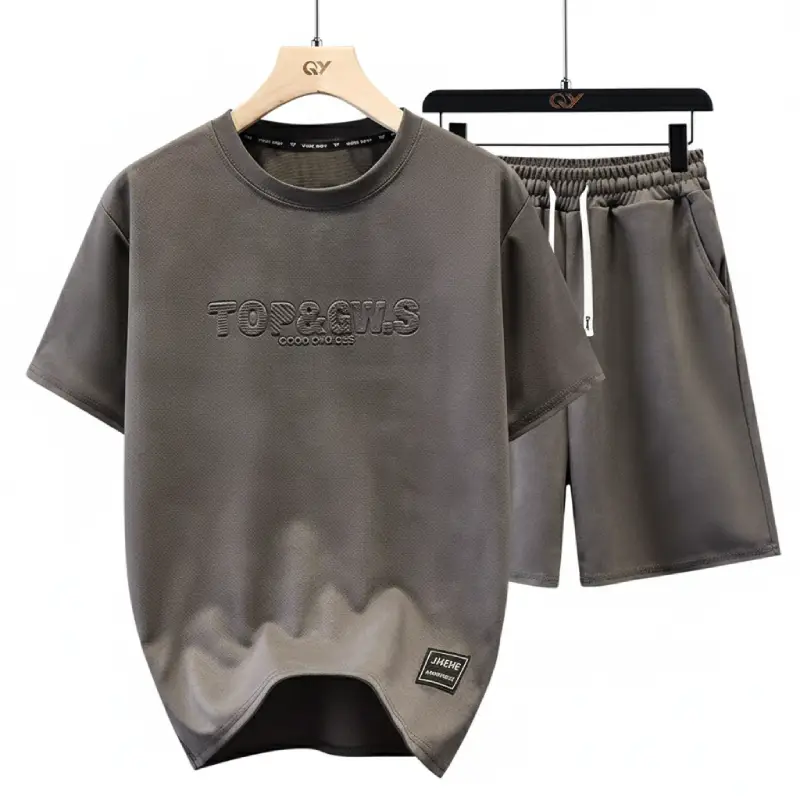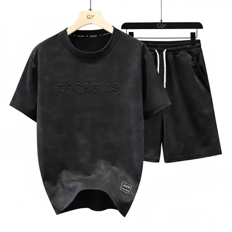 Affirmez votre style avec l’ensemble Ensemble T-Shirt haute qualité, une combinaison parfaite entre décontraction haut de gamme et design contemporain. Cet ensemble T-shirt et short est conçu pour l’homme qui ne veut pas choisir entre le confort absolu et une allure soignée.