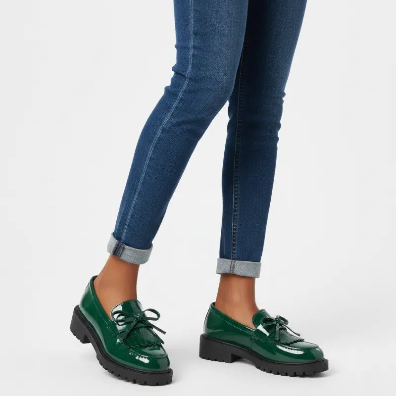 Redéfinissez votre style avec nos mocassins en similicuir verni, une pièce maîtresse qui marie parfaitement le charme classique et une esthétique moderne et audacieuse. Leur finition brillante vert émeraude apporte une touche de luxe et d’originalité à toutes vos tenues, du bureau aux sorties citadines.