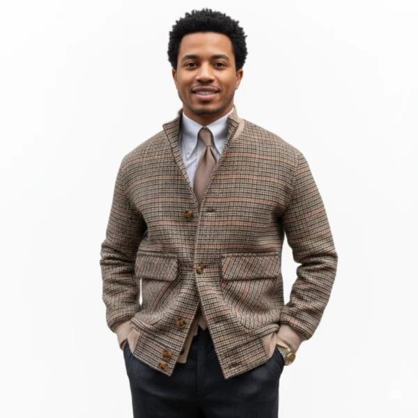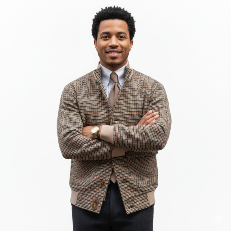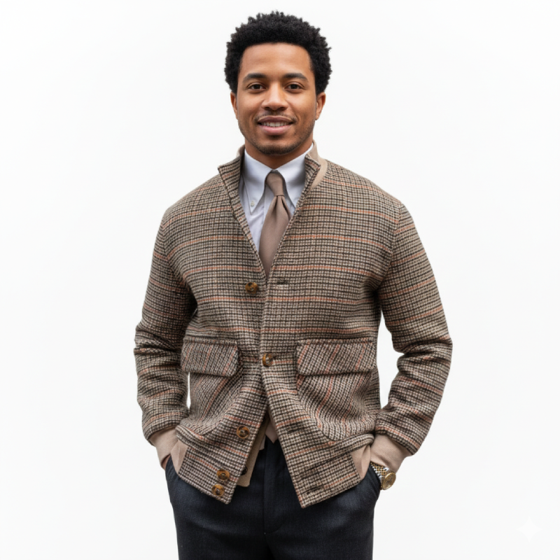 Redéfinissez votre vestiaire de mi-saison avec ce bomber en maille structurée, une pièce qui fusionne l’esprit décontracté du vestiaire urbain et le raffinement du sur-mesure. Conçu pour l’homme moderne, ce vêtement se distingue par son jeu de textures et sa coupe impeccable.