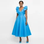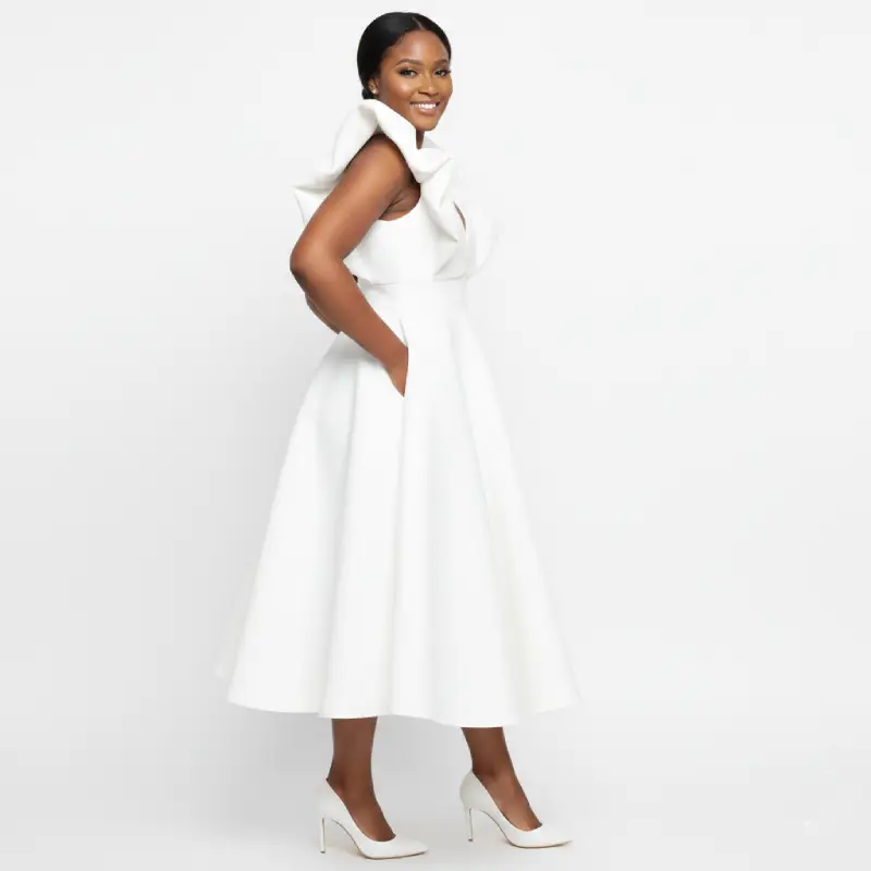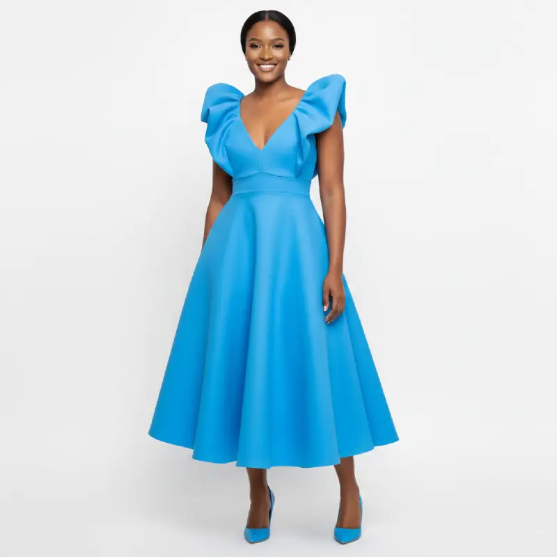 Affirmez votre style avec cette pièce maîtresse de notre collection. Conçue pour la femme moderne qui ne craint pas de se démarquer, cette robe allie une silhouette classique à des détails architecturaux audacieux.