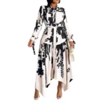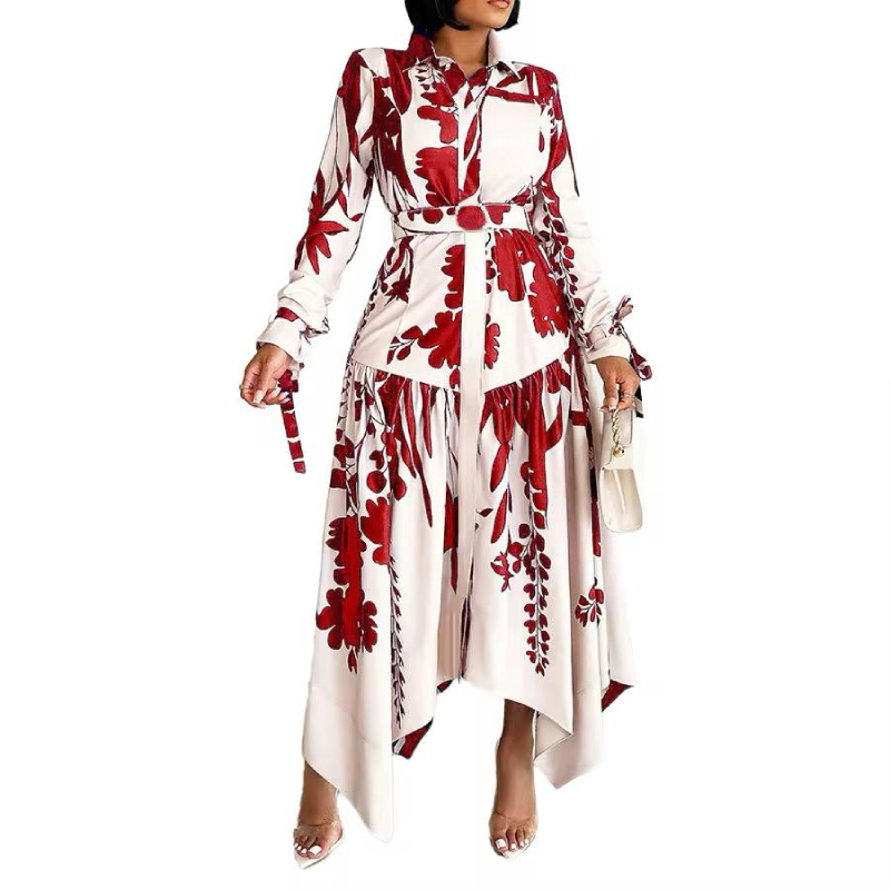 Robe Chemisier « Éclat Floral » – Coupe Asymétrique & Imprimé Arty