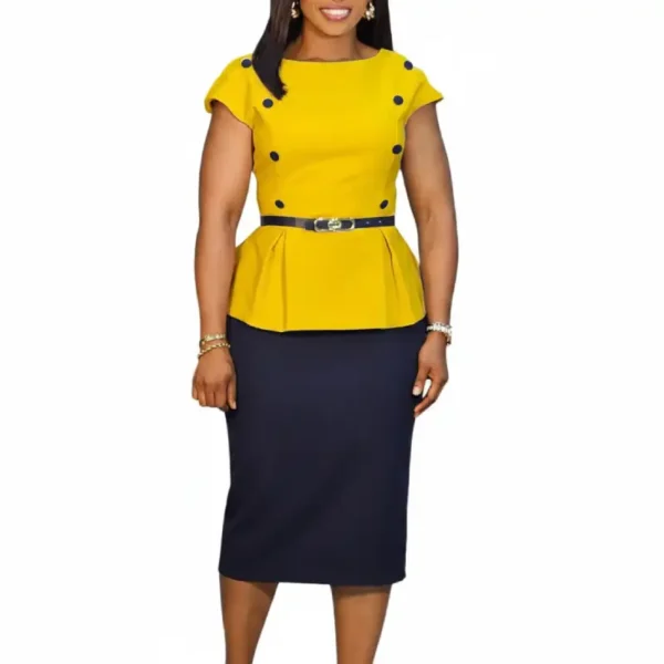 Redéfinissez votre garde-robe professionnelle et événementielle avec cette pièce maîtresse alliant sophistication moderne et coupe intemporelle. Conçue pour la femme active et élégante, cette robe bi-matière sublime la silhouette avec une précision remarquable.