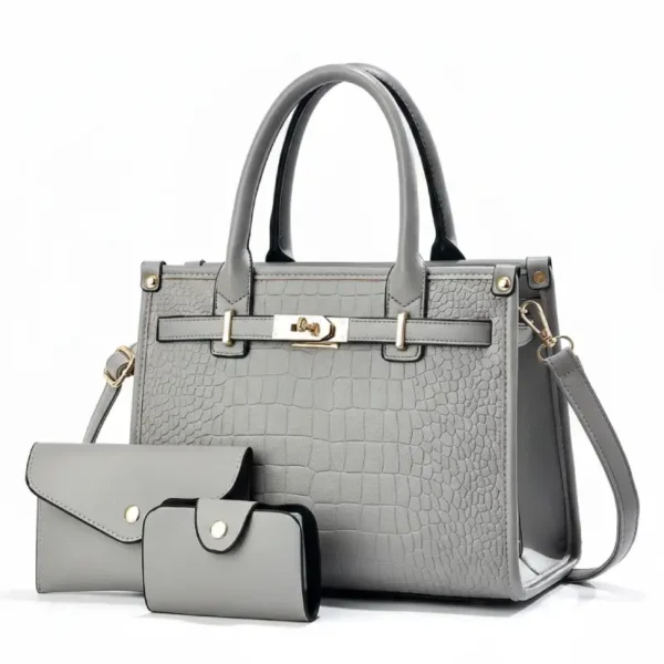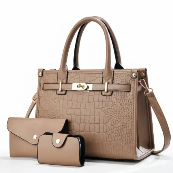 Redéfinissez votre style avec cet ensemble exclusif conçu pour la femme moderne et sophistiquée. Ce sac à main structuré, accompagné de ses deux pochettes assorties, allie parfaitement fonctionnalité et esthétique de luxe.
