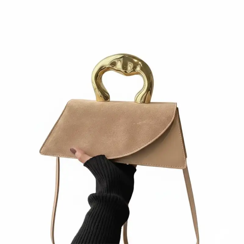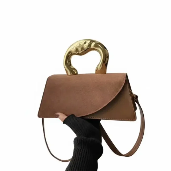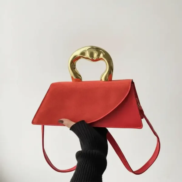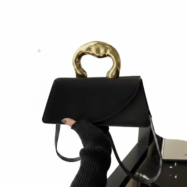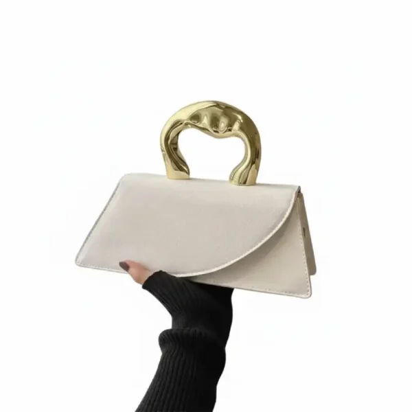 Le contraste saisissant entre la texture douce, éclatant et la poignée métallique dorée au design organique apporte une touche sophistiquée à n’importe quelle tenue, du cocktail chic au look urbain pointu.